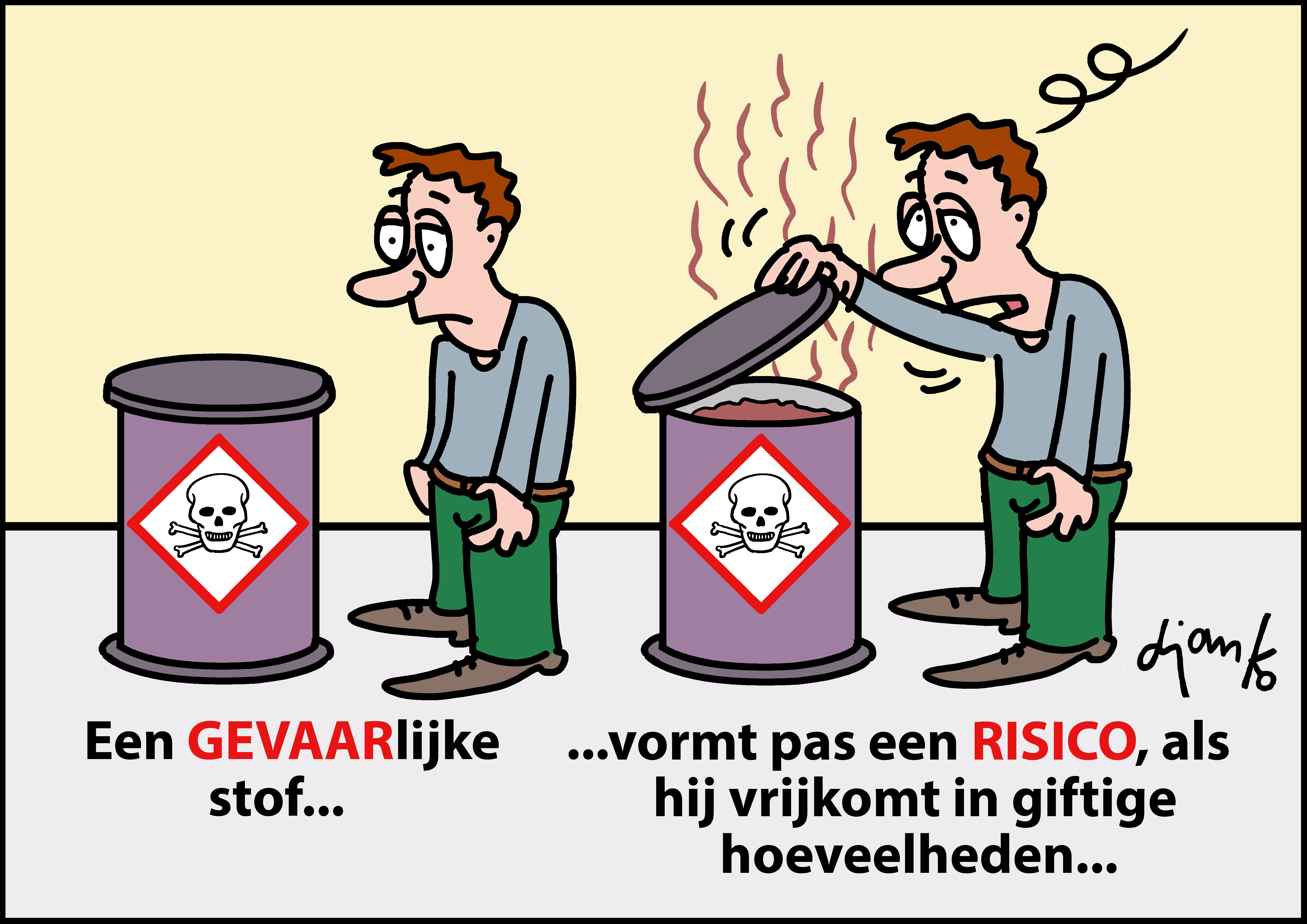 Het verschil tussen gevaar en risico van gevaarlijke stoffen wordt niet altijd goed begrepen. Een beeld zegt meer dan 1000 woorden. Jolanda Willems (PreventPartner) en Tamara Onos hebben twee kunstenaars gevraagd om in één oogopslag het verschil duidelijk te maken. De resultaten mogen vrij worden gebruikt. Met dank aan de Nederlandse Vereniging voor Arbeidshygiënisten die dit project heeft gefinancieerd middels een innovatiesubsidie. Lees meer